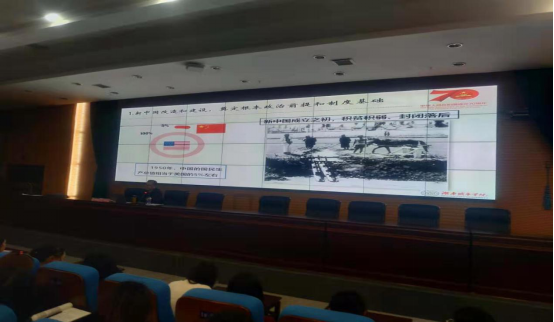 从新中国建立的白手起家,到后面“一五”计划取得全面发展,既抗美援朝,又巩固了国家的政权。从邓小平推动改革开放,到江泽民、胡锦涛继承和发展中国特色社会主义事业,校长进行了全面的分析和讲解。特别是习近平新时代中国特色社会主义思想的引领,让我们更加有信心、有能力在以习近平为核心的党中央领导下,建设富强民主文明美丽的中国而努力。