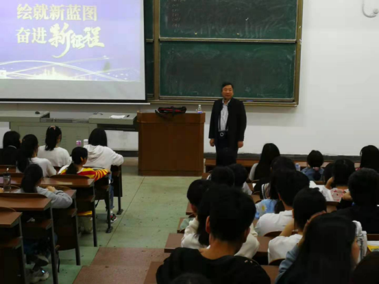 为贯彻落实《教育部关于加强新时代高校“形势与政策”课建设的若干意见》文件精神,湖南城市学院党委委员、副院长谭献良教授于2021年5月26日下午第5、6节课在第1教学楼107教室为2014105班、2014106班、2014107班、2014108班学生讲授了一堂题为“绘就新蓝图 奋进新征程”的形势与政策课。