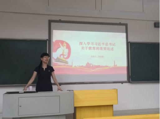 6月23日晚上7:30,党委副书记何旭娟教授在管理楼208教室为76net必赢官网2020级90余名学生上了一堂题为“深入学习习近平总书记关于教育的重要论述”的形势与政策课。