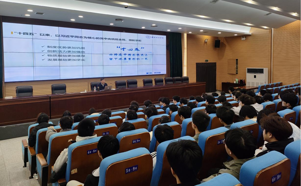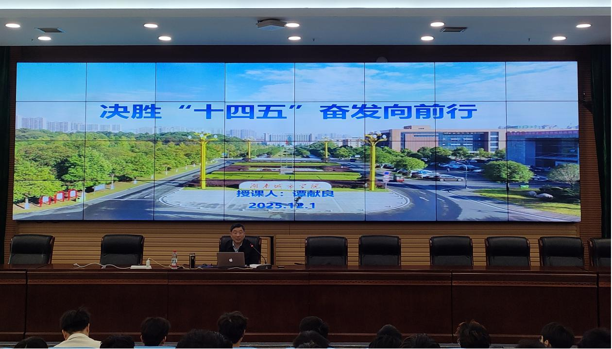 (通讯员 符雄辉)为引导青年学子深刻把握国家发展大势,增强时代使命感与专业认同感,12月1日上午,学校党委委员、副校长谭献良教授以“决胜‘十四五’,奋发向前行”为主题,在图书馆报告厅为土木工程学院2302601、2302602班本科学生讲授了一堂内涵丰富、视野宽阔的形势与政策课。