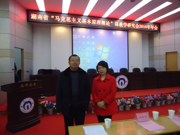 2016年12月16日至18日,湖南省马克思主义基本原理教学研究会2016年年会在南华大学圆满召开,全省36所高校的70多位从事“马克思主义基本原理概论”课教学、管理的领导和老师参加会议。我院党总支书记肖爱民教授、原理教研室主任邓凤香副教授出席会议。