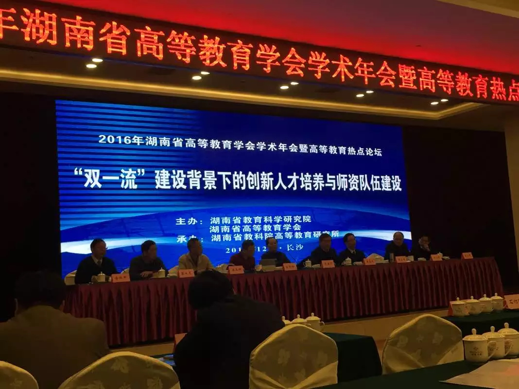 12月11日,由湖南省教科院和省高教学会联合主办、以“‘双一流’建设背景下创新人才培养与师资队伍建设”为主题的“2016年湖南省高等教育学会学术年会暨高等教育热点论坛”,在长沙枫林宾馆举行。我院周聪老师参加了此次会议。