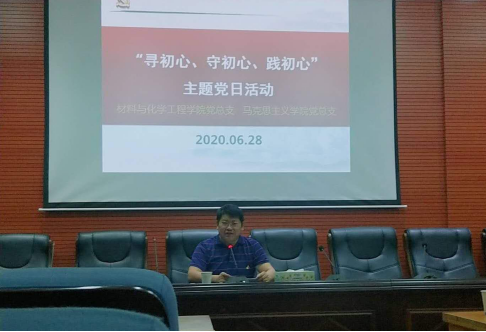“我志愿加入中国共产党,拥护党的纲领,遵守党的章程,履行党员义务,执行党的决定,严守党的纪律,保守党的秘密,对党忠诚,积极工作,为共产主义奋斗终身,随时准备为党和人民牺牲一切,永不叛党。”一阵阵整齐有力的声音从土木楼报告厅传出......这是“七一”前夕,由材料与化学工程学院和76net必赢官网党总支联合组织的一场“寻初心 守初心 践初心”主题党日活动上激动人心的一幕。中国共产党99年诞辰即将到来,学校党委号召全体党员干部立足岗位寻找初心、守护初心、践行初心,为党的生日献礼。两个学院党总支策划了重温入党誓词、聆听专题党课和“我向党旗宣誓”几个内容,目的在于激发教师党员再出发再奋斗的坚定决心。