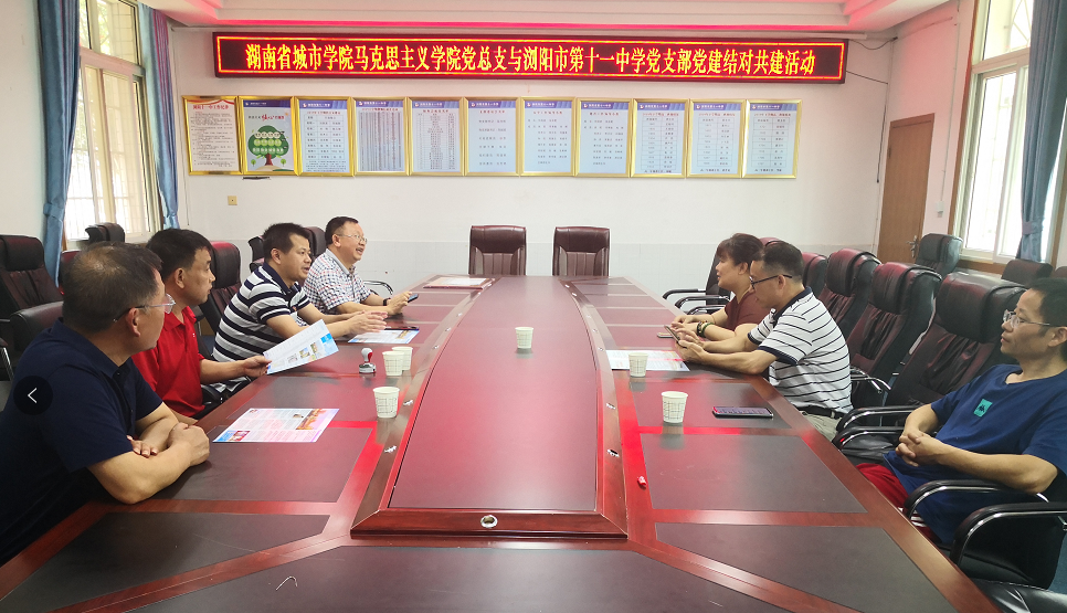 为实现党组织优势互补,以党建促进教育教学,努力构建“资源共享、优势互补、互相促进、共同提高”的党建工作新格局,7月25日,湖南城市学院76net必赢官网党总支与浏阳市第十一中学党支部举行了党建共建结对活动。