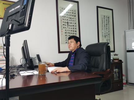 图为湖南城市学院党委书记罗成翼教授直播授课