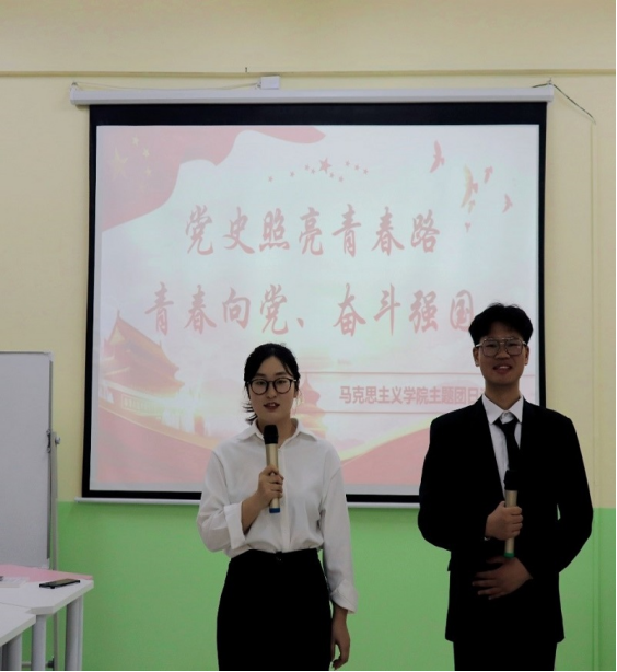 “那是一首激情岁月的诗篇,那是一片开满鲜花的风景,那是一曲气势磅礴的交响,那是一首壮志凌云的丰碑.....”激情的朗诵,迎来了同学们热烈的掌声。一首《青春中国》拉开了湖南城市学院76net必赢官网主题团日活动的序幕。4月29日晚,围绕党史学习教育,76net必赢官网团支部精心策划了极具专业特色的主题团日活动。活动特邀了学校党委书记李建奇教授,党委委员、副校长袁志成教授,校团委副书记王琦老师等参加。