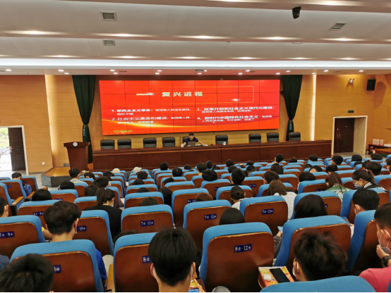 4月23日周六上午一二节课,校长汤放华在图书馆报告厅为大二2008601,2009301,2009302班的学生讲授了一堂题为“百年奋斗重大成就和历史经验”的形势与政策课。