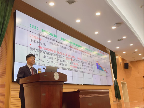 汤校长以粮食安全为中心,结合党的二十大报告,从斯里兰卡正在经历的粮食危机导入,分别讲述了世界性的粮食困境、我国的粮食安全现状与系统推进端牢中国饭碗。粮食问题是民生的基本问题。党的十八大以来,习近平总书记对粮食安全这个“永恒课题”高度重视,指出“粮食安全是‘国之大者’”,要求“在粮食安全这个问题上不能有丝毫麻痹大意”,强调“中国人的饭碗任何时候都要牢牢端在自己手上。我们的饭碗应该主要装中国粮”。党的二十大报告要求,“逐步把永久基本农田全部建成高标准农田”“深入进行种业振兴行动”“全方位夯实粮食根基”。