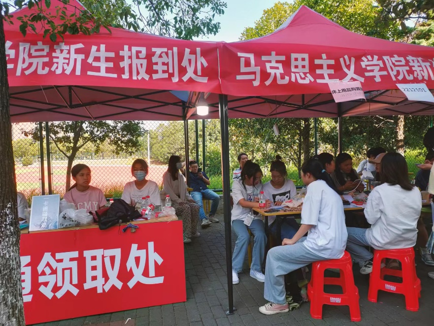 76net必赢官网的迎新台前,四位新生助班热情地做好迎新接待工作,耐心地讲解入学流程。校园各处,学生志愿者们负责引导新生办理交费、宿舍登记、办饭卡水卡等入学手续。