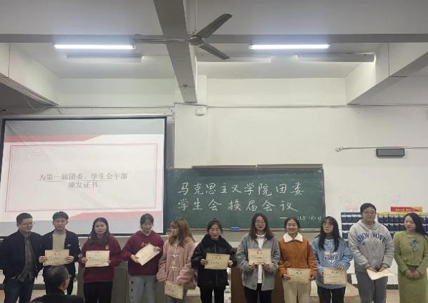会议第三项,由党总支副书记周洁、团委书记王俊为第一届团委、学生会干部颁发证书。