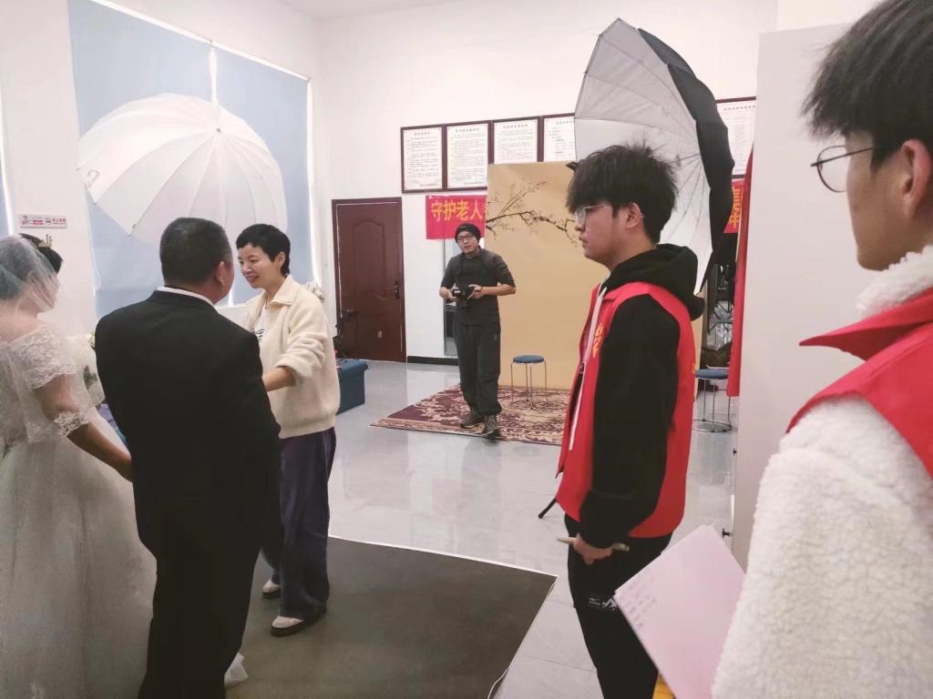 “爷爷奶奶,您请往这边坐!”活动伊始,志愿者们热情地引导前来参加活动的老人登记,为他们安排座位、化妆、奉茶。拍摄中,志愿者们有的在与老人们亲切交谈,认真了解他们的需求和喜好;有的在为老人们整理着装,调整姿势;有的在和老人们聊天说笑,帮助他们放松心情、缓解紧张……现场其乐融融。