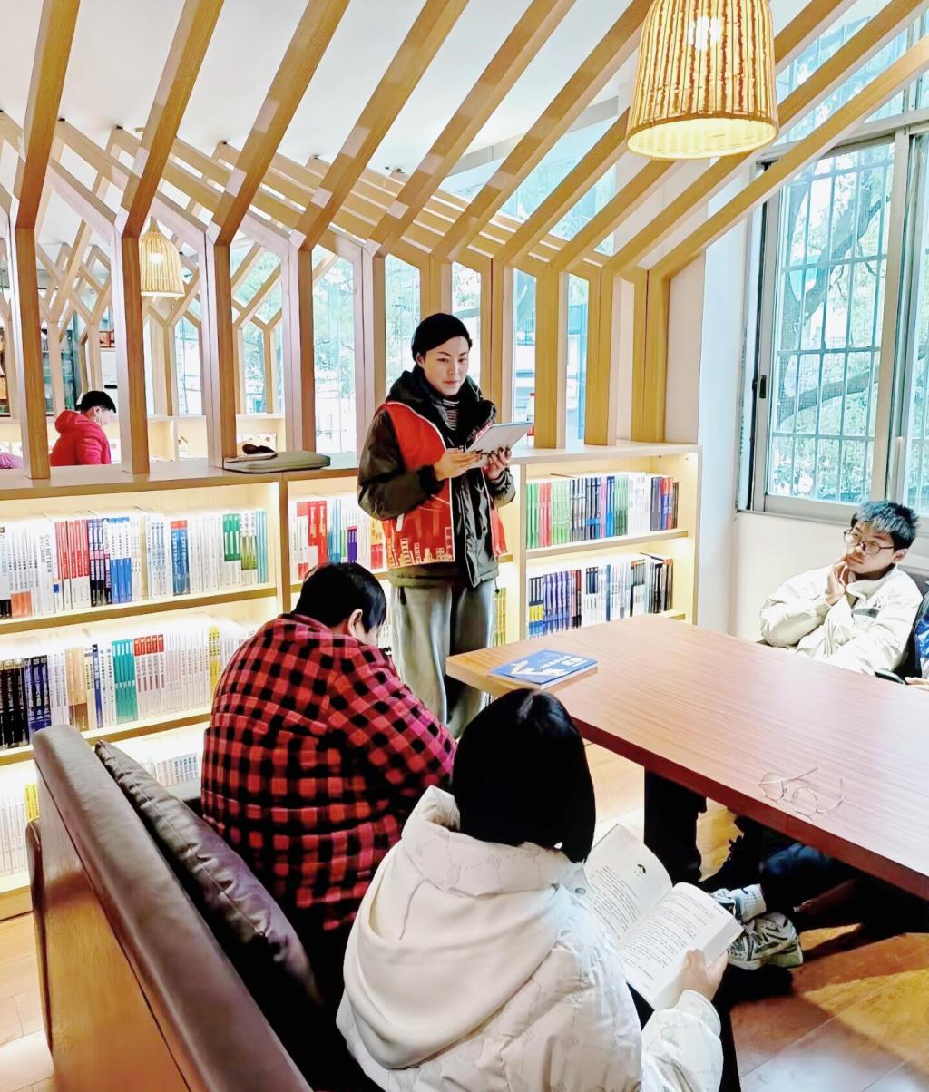 “士峨离家四载有余,虽奔波南北,历尽千辛,然为大众之生息,常觉无形的快慰,精神爽奋……”在益阳市新华书店读书角处,团队成员杨雯珺正带领孩子们饱含深情地诵读着红色家书,现场书声琅琅,书香浓浓。