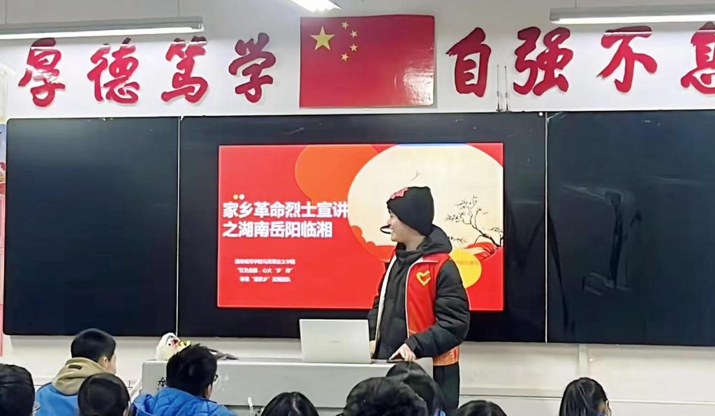(作者:郭蕙宁 彭冠男 杨雯珺) 2024年寒假,湖南城市学院76net必赢官网“红色血脉,薪火‘乡’传”社会实践团前往长沙、益阳、岳阳等地开展红色故事宣讲活动。团队成员们深入挖掘家乡红色资源,以“送课上门”的方式普及地方红色文化,赓续红色血脉,将一个个播撒红色火种的火红身影留在了书屋内、校园中、社区里……