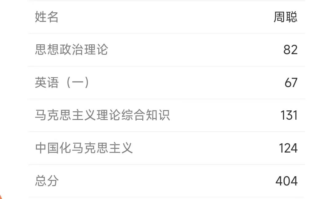 周聪的考研成绩