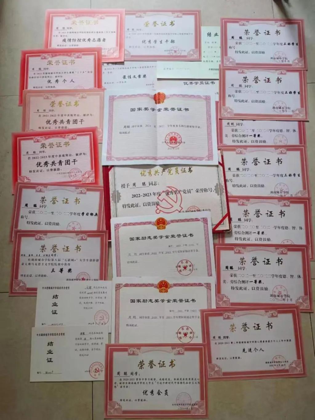 周聪大学期间的部分荣誉