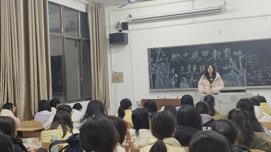 (通讯员 肖吴霞) 为教育引导学生知恩感恩、励志笃行,11月7日晚,马院2023级“励志感恩教育”主题班会于2教518室举行,2312102班班长谭婧婧主持班会。