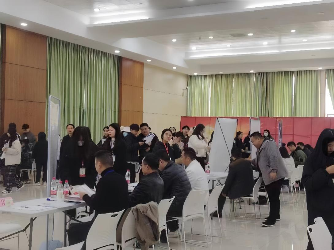 招聘会现场人头攒动,气氛热烈。各学院的师范类应届毕业生齐聚一堂,踊跃向用人单位投递简历,并与用人单位就工作内容、岗位特点、发展前景和薪资待遇等方面进行深入交流洽谈。此外,各毕业班辅导员也来到招聘现场,对接用人单位,指导毕业生积极投递简历,为双方沟通搭建起“连心桥”。